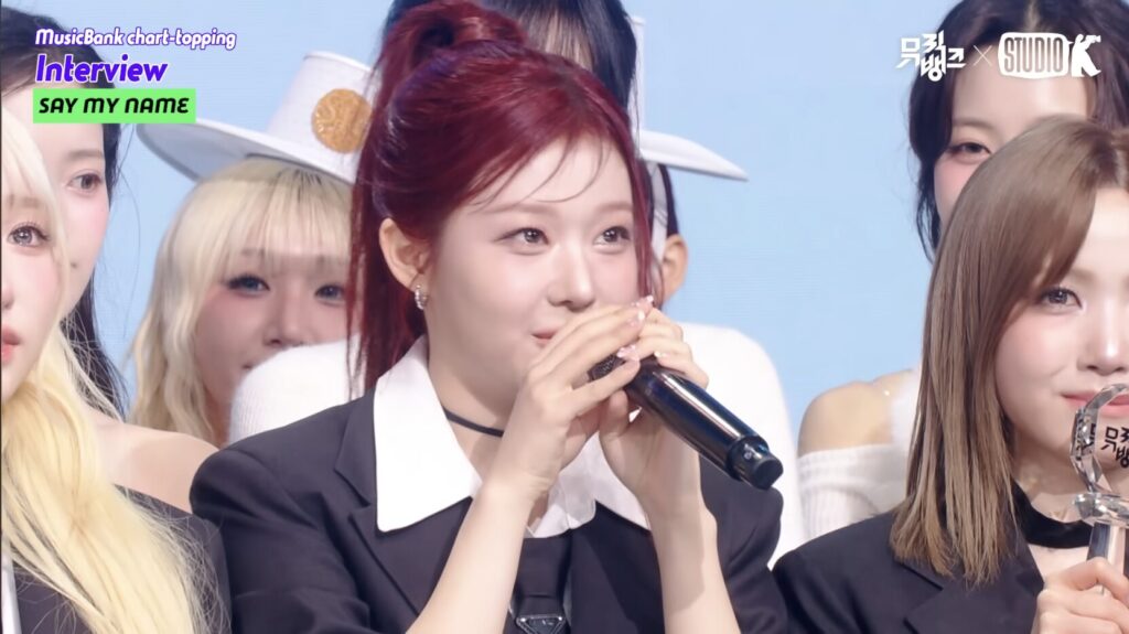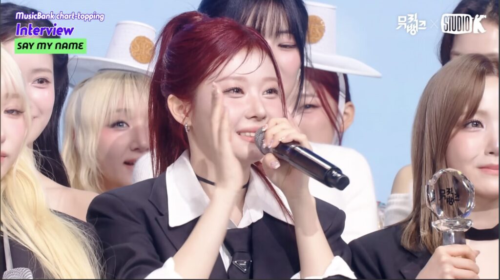 ヒトミ:「私たちがデビューして1位を取ったのは初めてです。本当にずっと夢見てきたこの瞬間に実感が湧かなくて、そして今年初めてのMusic Bankで意味のある結果が得られて本当に光栄です。」